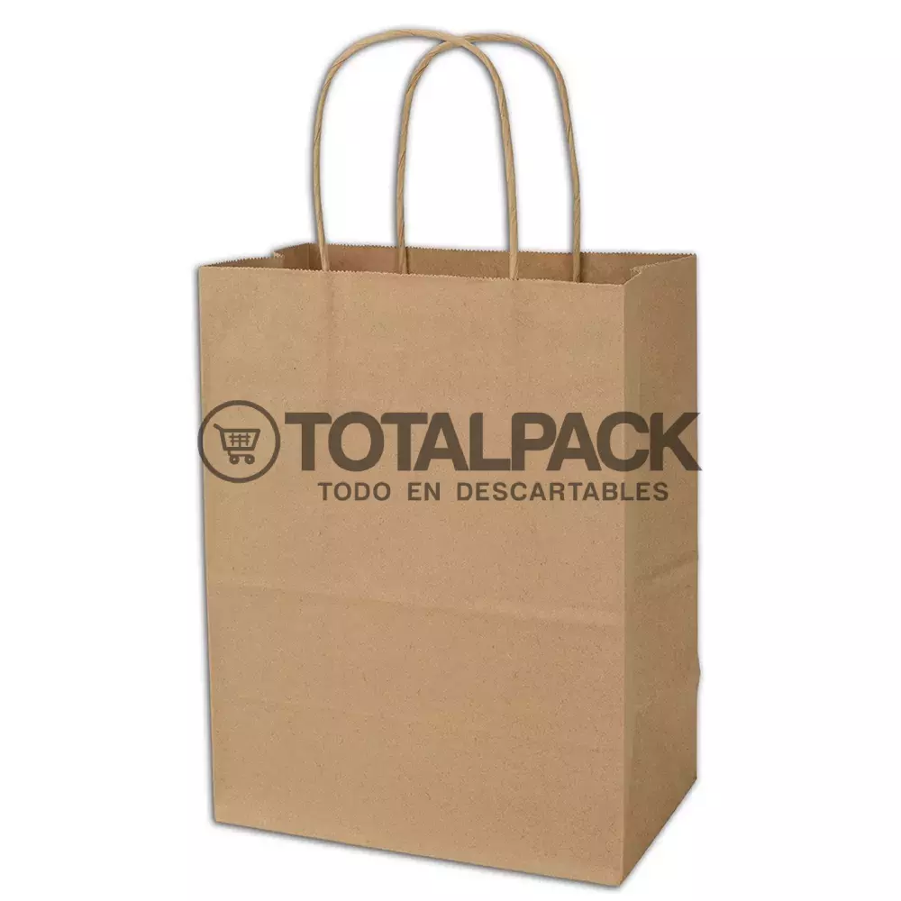 Bolsa fabricada con papel kraft, confeccionada con pegamentos no contaminantes. Posee manijas de papel de alta resistencia. 100 % biodegradable, reciclable y reusable.
